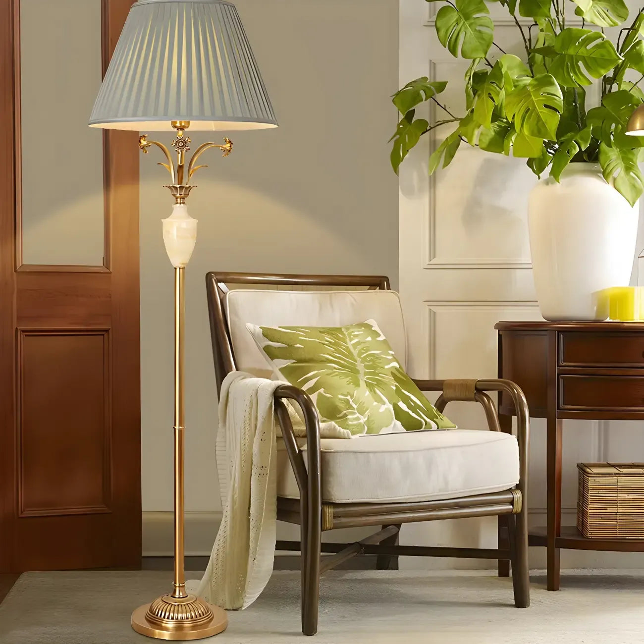 Ce lampadaire évoque une ambiance vintage avec sa forme classique et sa couleur riche. Son socle à la finition chaude contrastante en fait un élément sculptural dans n'importe quelle pièce, diffusant une lumière accueillante qui s'harmonise aussi bien avec les intérieurs modernes que traditionnels.